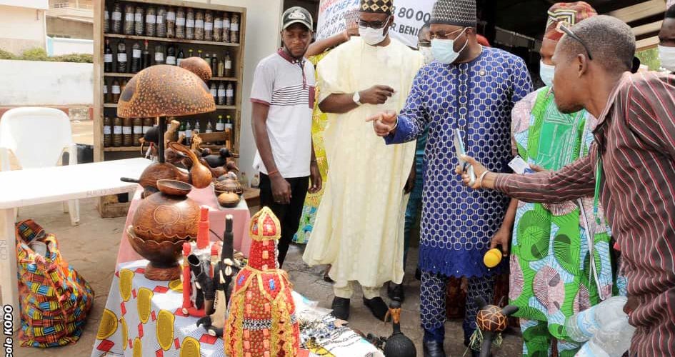 Au cours de sa vite, le maire Charlemagne Yankoty a découvert plusieurs collections, articles, fabriqués exclusivement dans notre pays et dans bien d’autres pays africains dont le Burkina Faso, le Niger, le Sénégal et autres pays africains. Certains pagnes , chaussures, bijoux, produits de la pharmacopée mets et même boissons locales ont été découverts également par le président du comité d’organisation.